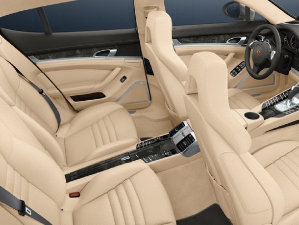 Im Interieur findet man serienmäßig eine Bi-Color-Lederausstattung. Exklusiv für den Panamera Turbo S gibt es die Kombination schwarz und crema, die man hier sieht.