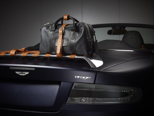 Am auffälligsten an der Erscheinung des Virage Volante, der von Q by Aston Martin in Genf gezeigt wird, dürfte die Lackierung in seidenmattem Mariana Blau sein. Auf dem Kofferraumdeckel ist ein aufwendig gestalteter Gepäckträger befestigt, der an alte britische Traditionen erinnert. Taschen und Koffer können mit Ledergurten festgezurrt werden. Das Interieur wurde an die Lackfarbe der Karosserie angepasst. Dunkelblaues Leder wechselt sich mit gelben Lederakzenten auf den Sitzen ab und wird durch blau eingefärbtes Sichtcarbon auf der Mittelkonsole, sowie gelben Kontrastnähten abgerundet. Die Fußmatten bestehen aus dem selben Leder wie gute Reitsättel. Vor dem Innenspiegel ist eine Videokamera für Trackdays angebracht, die bewegte Bilder in HD-Qualität aufnimmt.