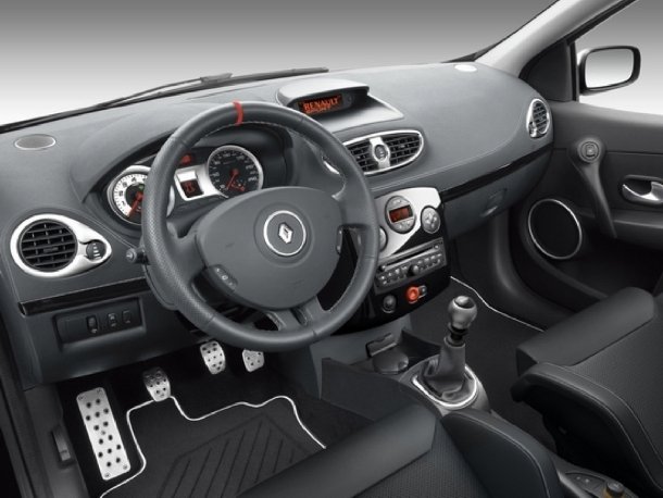 Das Interieur kommt beim Ange & Démon mit einer sehr guten Ausstattung zu den Kunden. Dazu zählen eine Klimaanlage, exklusive Fußmatten, elektrisch verstell- und anklappbare Außenspiegel, sowie das Renault Sport Telemetrie-System und ein TomTom-Navigationssystem. Das Radio ist mit einer Bluetooth-Freisprecheinrichtung kombiniert. Fahrer und Beifahrer nehmen in lederbezogenen Recaro-Sportsitzen Platz. Über einen exklusiv für das Sondermodell gestalteten Schalthebel lassen sich die sechs Gänge manuell wechseln. Zwischen Schalt- und Handbremshebel wurde eine Plakette mit der Limitierungsnummer angebracht.