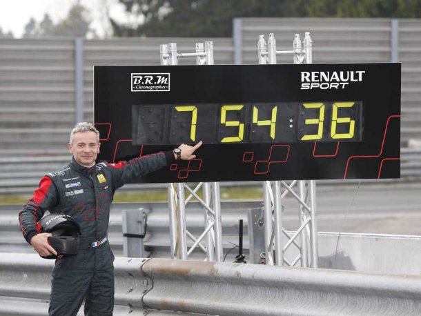 Werksfahrer Laurent Hurgon ist stolz: Mit 7:54,36 Minuten war er im Megane rund vier Sekunden schneller als der bisherige Rekord.