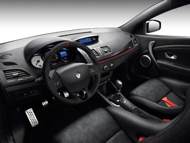 Im Interieur präsentiert sich der Megane RS 275 Trophy-R größtenteils in schwarz, erhält jedoch hier und da rote Akzente.