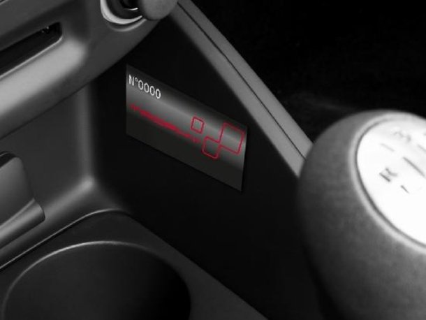 Hinter dem Schaltknauf in der Mittelkonsole findet sich eine Plakette, die über die individuelle Baunummer innerhalb der nur 500 geplanten Exemplare Auskunft gibt.