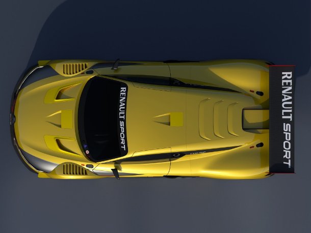 Das aktuelle Renault-Design beginnt an der Front mit dem zentral in Szene gesetzten Markenlogo. Durch weit um die Bremsbelüftungsöffnungen herumgezogene Tagfahr-LEDs wird die Fahrzeugbreite von exakt zwei Metern zusätzlich betont. Gleichzeitig ist der R.S. 01 lediglich 1,116 Meter hoch, was in Verbindung mit dem geringen Abstand zwischen Frontsplitter und Asphalt dazu führt, dass er für das Auge quasi am Boden klebt. Damit dieser optische Effekt auch beim Fahren Wirklichkeit wird, sorgt aerodynamischer Feinschliff rundum für einen Anpressdruck von rund 1,7 Tonnen bei 300 km/h, womit der R.S. 01 alle aktuellen GT3-Rennwagen übertrumpft und ungefähr auf dem Niveau der DTM liegt. In der World Series by Renault können allenfalls die Monoposti der Formel Renault 3.5 mithalten.