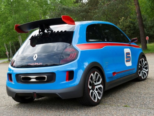 Im Rahmen des Formel 1 Rennens in Monaco präsentierte Renault das Twin’Run Concept, bei dem hinter den beiden Passagieren ein 3,5 Liter großer V6-Motor verbaut ist. Optisch sind die Anleihen beim R5 Turbo nicht zu übersehen. In der Frontalansicht erinnert die Form der Scheinwerfer in Verbindung mit den Zusatzscheinwerfern an die Rallyevariante des legendären Mittelmotor-Sportlers, was ebenso für den Dachflügel am Heck gilt. Dank Fiberglas-Karosserie, Rohrrahmen-Chassis und Carbon-Verwendung am Dach, den Kotflügelverbreiterungen, dem Frontsplitter und Heckschürze bringt der Twin’Run lediglich 950 Kilogramm auf die Waage. Ganz so niedrig wird das Gewicht beim kommenden Twingo wohl nicht ausfallen, aber diverse optische Ideen der Studie dürften dennoch den Weg in die Serie finden. Die ausgestellten Radhäuser schaffen Platz für 18 Zoll große Leichtmetallräder mit 205/40er Reifen vorn und 245/35er Pneus hinten.