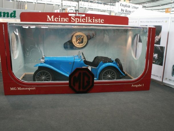Wie auch in Essen geben sich die Markenclubs alle Mühe, um ihren Messestand für die Besucher interessant zu gestalten. Die meiner Meinung nach beste Idee hatte in diesem Jahr der MG-Club mit einer überdimensionalen Modellautoschachtel inklusive passendem Inhalt und dem seitlichen Aufdruck „Nicht für Kinder zwischen 0 und 17 Jahren geeignet“.