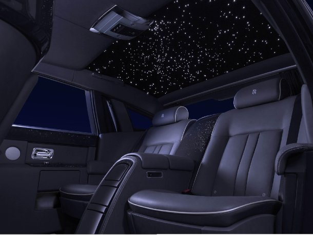 In der Nacht des Jahreswechsels von 2002 auf 2003 erfolgte um 00:01 Uhr die Auslieferung des allerersten neuen Phantom, der damit die Ära der bei BMW entwickelten Rolls-Royce auf besondere Weise einläutete. Anlässlich des 10-jährigen Bauzeit-Jubiläums wurde bereits vor einiger Zeit der Phantom Home of Rolls-Royce Collection vorgestellt, der auf den Einstiegsleisten die exakten Koordinaten des Werks in Goodwood und das oben genannte Datum nebst Uhrzeit aufführt. Neben diesen Plaketten findet sich im Phantom Celestial eine weitere Besonderheit, die an den Auslieferungszeitpunkt des ersten Phantom erinnert: Über den Köpfen der Fond-Passagiere wurde mit LEDs die exakte Stellung der Sternbilder nachgebildet, die am 1.1.2003 um 00:01 Uhr über Goodwood zu sehen waren. Diese finden sich auch auf den Tellern des mitgelieferten, maßgeschneiderten Picknick-Korbes wieder.