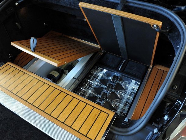 Neben speziellen Pinstripe-Linien auf dem Lack, die von Hand aufgetragen werden, besonderen Ziernähten im Leder, die je nach Kundenwunsch ausgeführt werden und auch schon einmal die Form von Pflanzenranken haben können oder Tachoscheiben in besonderen Farbgebungen werden auch passgenaue Umbauten für den Kofferraum angeboten. Darunter neben den obligatorischen Gepäcksets, wie sie auch von anderen Luxusherstellern zu haben sind, auch Kühlfächer für Champagner inklusive Gläserhaltern und ein gerade neu vorgestellter Picknickkoffer, der alles enthält, was ein britischer Connaisseur für ein gepflegtes Mahl im Grünen benötigt. Neben Tellern und Besteck sind auch vier edle Gläser und Handtücher im Koffer untergebracht, der natürlich passend auf den Kofferraum des entsprechend bestellten Rolls-Royce und die verwendete Holzfarbe im Innenraum abgestimmt ist.