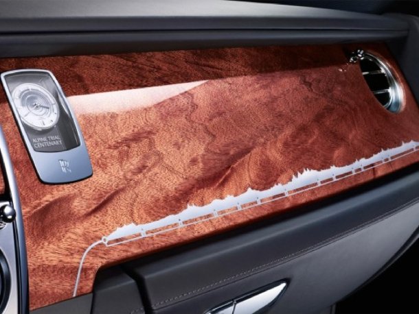 Im Interieur wird die Geschichte der Alpenfahrt durch eine einzigartige Analoguhr in der Mitte des Armaturenbretts und einmalige Einleger im Holz oberhalb des Handschuhfaches und in den ausklappbaren Picknicktischen im Fond erzählt. Diese Holzeinleger geben die Route der Alpenfahrt und die Höhenunterschiede wieder. Dabei wurde hohes Augenmerk auf Genauigkeit der angezeigten Daten gelegt, um auch Historiker unter den Rolls-Royce-Fans zufriedenzustellen.