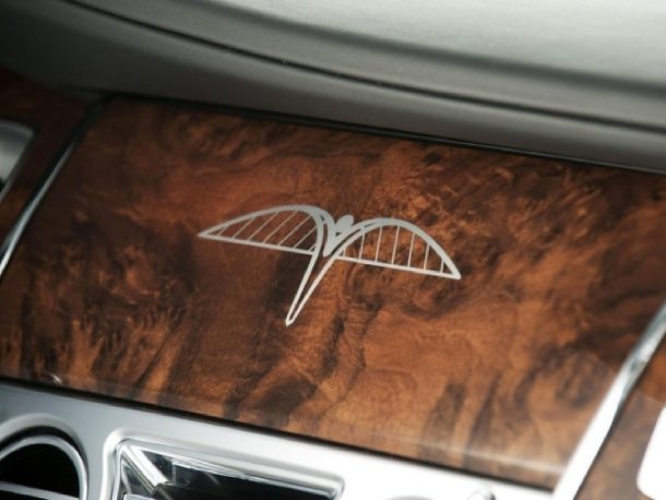 Dieser Flugapparat wurde von Rolls-Royce mittels eines Logos dargestellt, das sich wie erwähnt auf den Kopfstützen findet. Zusätzlich wird es per Hand auf den vorderen Kotflügeln aufgemalt. Es erinnert nicht nur an Abbas Ibn Firnas, sondern von der Form her auch ein wenig an die Spirit of Ecstacy, die bekanntlich als Kühlerfigur jeden Rolls-Royce begleitet. Im unteren Bereich der D-Säulen findet sich der ebenfalls handgemalte Schriftzug „فرناس“, was die arabischen Zeichen für „Firnas“ sind. In die Holzverkleidung des Armaturenbretts ist das Firnas Logo unter dem Klarlack eingelegt worden und auch die Einstiegsleisten zeigen das Firnas Motiv nebst der Beschriftung „Firnas motif – one of five“.