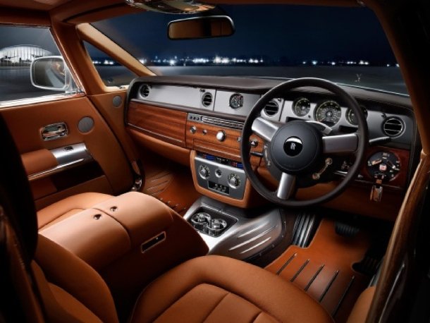 Außerdem gibt es noch Fußmatten aus echtem Leder, Cupholder aus hochglanzpoliertem Aluminium und ein in Leder ausgeschlagenes Handschufach mit eingeprägtem Zitat von Charles Stewart Rolls aus dem Jahre 1908: „The power of flight is as a fresh gift from the Creator, the greatest treasure yet given to man“.