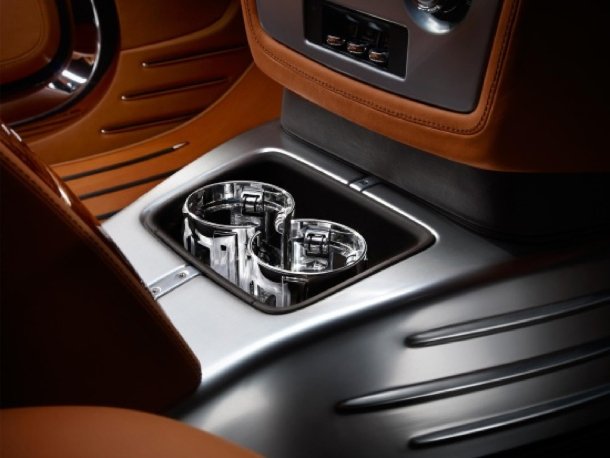 Außerdem gibt es noch Fußmatten aus echtem Leder, Cupholder aus hochglanzpoliertem Aluminium und ein in Leder ausgeschlagenes Handschufach mit eingeprägtem Zitat von Charles Stewart Rolls aus dem Jahre 1908: „The power of flight is as a fresh gift from the Creator, the greatest treasure yet given to man“.