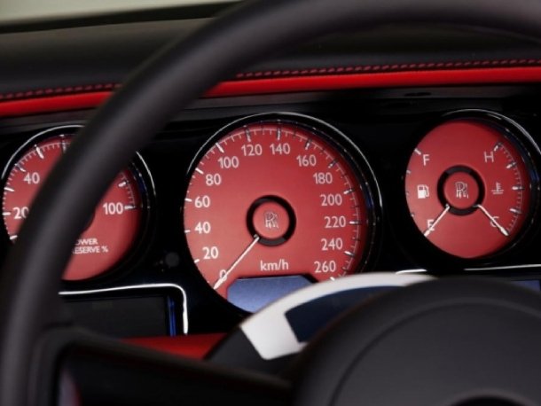 Selbst die Zifferblätter der Rundinstrumente zeigen sich in rot.