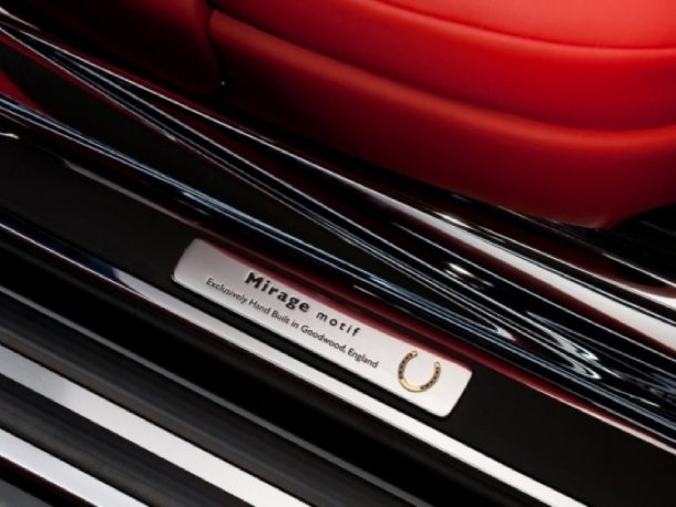 Das Fahrzeug wurde in Goodwood exakt nach den Vorgaben von Herrn Al Helli umgesetzt und steht nun in Abu Dhabi zum Verkauf. Außen erhielt der Wagen als einer der ersten Rolls-Royce überhaupt eine matte Lackierung in Schwarz, die entlang der Gürtellinie mit einer handgezogenen roten Linie versehen ist. Oberhalb des in die Kotflügel eingelassenen Markenlogos ist ein Pferdekopf aufgezeichnet. Das Leder im Interieur trägt größtenteils den Farbton Mugello Rot. Durch schwarzes Leder auf dem Armaturenbrett und ein schwarzes Lederlenkrad, sowie Dekorleisten in schwarzem Klavierlack wird ein schöner Kontrast geschaffen. In die Kopfstützen ist erneut das Abbild von Mirage eingestickt, das sich auch in der Dekorleiste über dem Handschuhfach findet, während der Dachhimmel durch hunderte von LEDs den Rolls-Royce eigenen Sternenhimmel erzeugt.