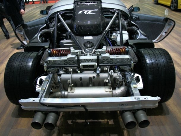 Direkt hinter den Passagieren sitzt der 777 PS starke Turbomotor mit 3,75 Litern Hubraum.