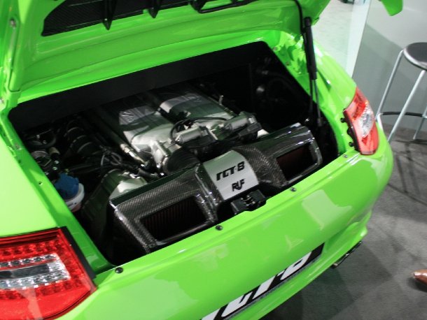 Diesmal schlägt’s nicht 13, hier schlägt es genau achtmal. Der kleine Pfaffenhausener Automobilhersteller RUF brachte heimlich, still und leise eine Riesensensation mit zum Genfer Auto-Salon: Eine Porsche 911er Karosserie mit eigens entwickeltem 4,5 Liter V8-Motor. Willkommen im RUF RGT-8 mit 550 PS und 500 Newtonmetern Drehmoment, entworfen von einem ehemaligen DTM- und Formel 1-Motorentechniker.