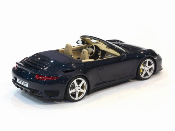 Der erste Turbo-aufgeladene offene Wagen auf Porsche 991-Basis erhält ein elektrisch betriebenes Stoffverdeck und neu gestaltete Front- und Heckschürzen. In den hinteren Kotflügeln befinden sich Lufteinlässe zur Versorgung der Ladeluftkühler. Hinten findet sich ein Heckspoiler in Anlehnung an den legendären Entenbürzel. Das Messefahrzeug in Genf trägt dunkelblauen Lack. Dazu gibt es im Interieur Sitze mit hellbeiger Leder-Ausstattung, die mit blauem Stoff kombiniert wurde, wobei der Stoff in alter Tradition ein Karomuster trägt.