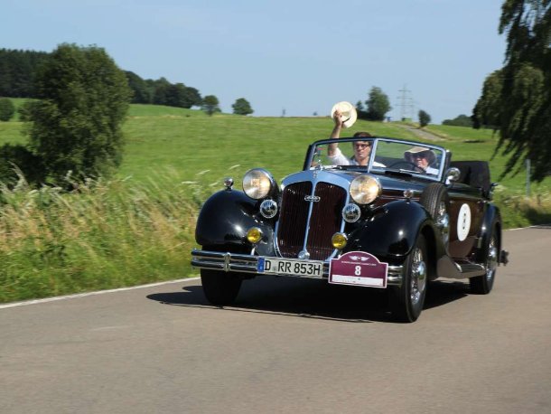 Die Teilnehmerfahrzeuge entstammten dem Baujahreszeitraum zwischen 1925 und 1984. Hier im Bild ein Horch 853 Sportcabriolet von 1935.