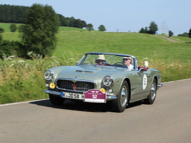 Und die Sonne kam wie bestellt. Stellenweise wurden am Samstag 36°C im Schatten gemessen, was durchaus als „heiß“ durchgehen kann. Den mehr als 100 Teilnehmern der Rallye Historique machte dies jedoch wenig aus. Ein Großteil von ihnen war eh mit Cabrios unterwegs und die anderen ließen eben alle Fenster weit offen stehen, während sie winkend an den zahlreichen Zuschauern auf der rund 250 Kilometer langen Strecke vorbeifuhren. Dabei war alles, was Rang und Namen in der Automobilwelt besitzt, vom VW Käfer in der Kategorie „so einen hatte ich/Tante Erna/Papa auch mal“ bis hin zum Ferrari 250 SWB California Spider, vom Bugatti Type 35 aus der Vorkriegszeit bis hin zu einem Porsche 911 Carrera 3.2 Cabrio aus Baujahr 1984, dem neuesten Fahrzeug der Rallye Historique.