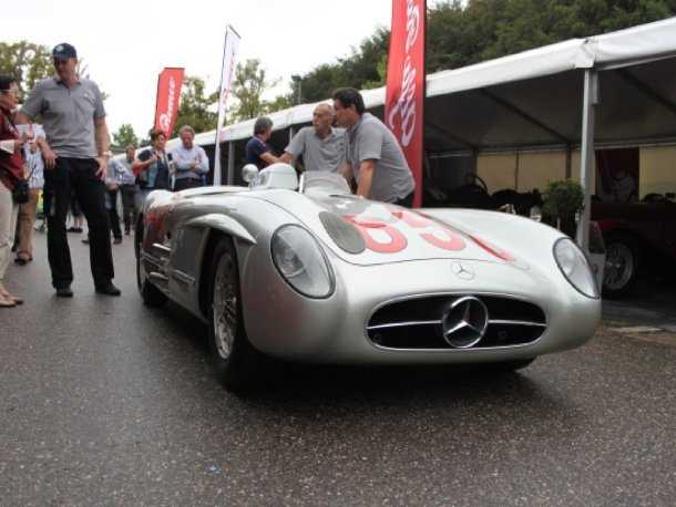 Am Steuer dieses Mercedes-Benz 300 SLR drehte 1955 der unvergessene Juan Manuel Fangio. Am Schloss Dyck begeisterte Hans Herrmann mit dem Wagen die Fans.