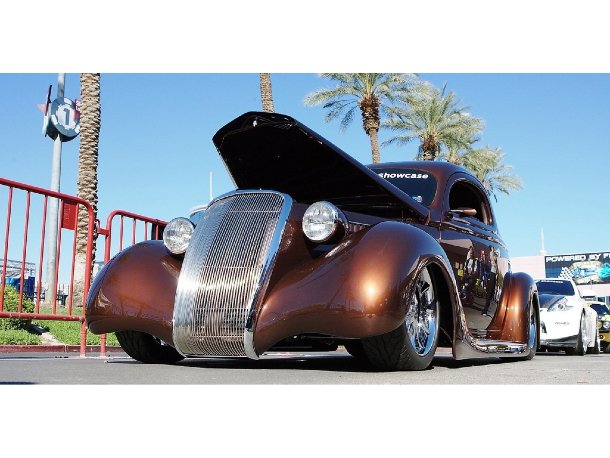 Hot Rods gehören zu Amerika ebenso dazu, wie fettige Pommes zum Burgermenü. So waren natürlich auch einige dieser Fahrzeuge auf der SEMA zu sehen, bei denen man nichtmal mit viel Fantasie noch die ursprüngliche Basis erkennen kann. Überraschend für mich war es jedoch, dass selbst an die Kinder gedacht wird. Ein Dreirad mit Airbrush und langen Kotflügeln habe ich bei uns bisher noch nicht im Spielwarenhandel gesichtet.