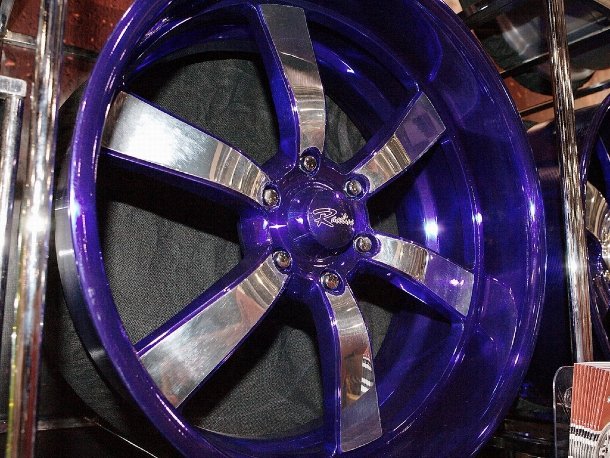 Daneben gibt es hier sagenhaft schöne Felgen. Der neueste Trend hier in den USA: farbige Felgen. Von komplett eloxierten oder lackierten Modellen bis hin zu einzigartig handbemalten. Na dann viel Spass beim Einparken, aber bitte nicht den Bordstein streifen!