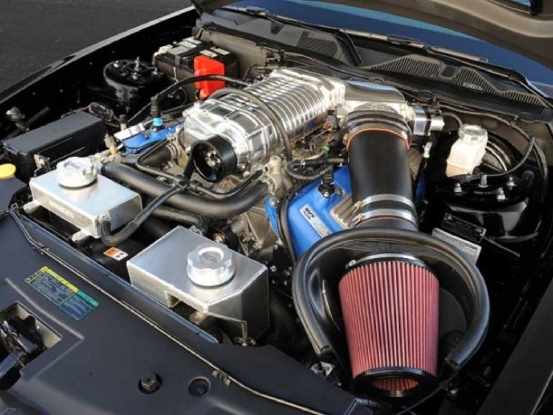 Mittels eines großen Kompressors wird der V8-Motor des Shelby Mustang auf bis zu 811 PS gebracht.