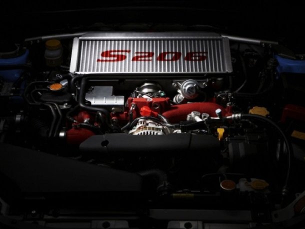 Hinter den schwarzen BBS-Leichtmetallfelgen in 19 Zoll zeigt sich die Hochleistungsbremsanlage, die Subaru bereits auf der Nordschleife erprobt hat. Auf den Felgen sind Michelin Pilot Super Sport-Reifen in 245/35 aufgezogen. Ein Sportfahrwerk mit speziell abgestimmten Bilstein-Dämpfern sorgt für gute Bodenhaftung. Durch vier runde Auspuffendrohre kann der 2,5 Liter große Vierzylinder-Boxermotor vernehmlich ausatmen. Durch perfekte Handabstimmung, die für jeden Motor per Hand im Werk vorgenommen wird, erreicht Subaru eine Steigerung um 20 auf 320 PS (235 kW) und um 24 auf 431 Newtonmeter Drehmoment, wobei speziell der mittlere Drehzahlbereich mehr Drehmoment erhielt. Somit dürfte die Beschleunigungszeit auf 100 km/h unter den 5,2 Sekunden des normalen WRX STi liegen. Fahrer und Beifahrer werden dabei in die eng anliegenden Recaro Sportsitze gedrückt, die mit Leder und Alcantara bezogen sind.