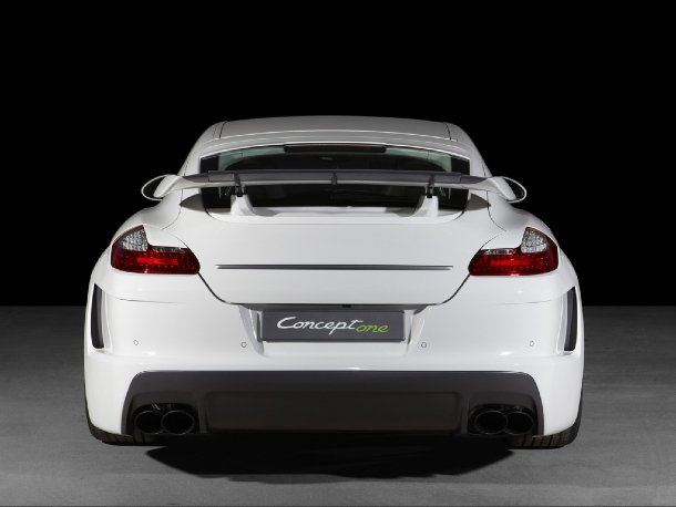 Ein ähnlich radikales Fahrzeug zeigen die Leonberger mit dem Techart Concept One. Die weiße Panamera-Limousine wird durch eine neue Frontschürze mit großen integrierten Lufteinlässen, eine Heckschürze mit Luftauslässen hinter den Hinterrädern, eine Motorhaube mit kiemenartigen Luftauslässen, sportliche Seitenschweller, einen großen Heckflügel, einen kleinen Dachspoiler und partielle Leuchtenabdeckungen zu einem wilden Sportgerät. 22 Zoll große Leichtmetallräder unterstreichen diese Optik gekonnt. Vorne ist das Concept One 21 Millimeter, hinten gar 42 Millimeter breiter als der Panamera Turbo, auf dem der Wagen basiert.