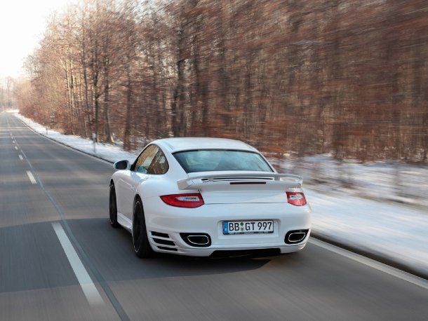 Nehmen wir an, Sie hätten gerade einen nagelneuen 997 Turbo in Empfang genommen, sind aber mit der Optik ein klein wenig unglücklich. Hier können die Leonberger Jungs eventuell Abhilfe schaffen und Ihren Wünschen gerecht werden. Zur Wahl stehen zwei Aerodynamikpakete. Beim Aerdynamik Kit I wird an der Front ein Spoiler integriert, seitlich kommen neue Schweller zum Einsatz und am Heck sorgen ein Dachspoiler und eine Spoilerlippe auf dem ausfahrbaren Serienspoiler in Verbindung mit einem Diffusor für deutlich reduzierten Auftrieb.