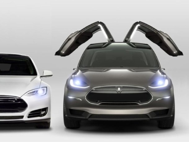 Neben dem Model S soll ab Anfang 2014 mit dem Model X das automobile Äquivalent zur eierlegenden Wollmilchsau auf den Markt kommen. Es handelt sich um ein Crossover-Fahrzeug aus SUV und Van, das jedoch über ein sehr auffälliges Merkmal verfügen wird: Alle vier Türen öffnen nach oben. Sie sind an der Dachmitte befestigt und mit einem speziellen Scharniermechanismus versehen, der das Öffnen auch in engen Parklücken und niedrigen Parkhäusern erlauben soll. Gleichzeitig ermöglichen sie es, den Model X im wahrsten Sinn des Wortes zu „betreten“, anstatt in ihn hineinzusteigen. Tesla nennt das Ganze „Falkenflügeltüren“.