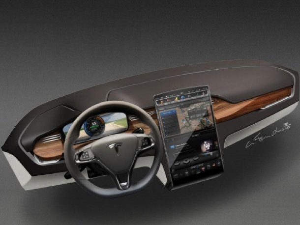 Der Innenraum bietet Platz für bis zu sieben Personen, die es sich in drei Reihen bequem machen können. Um die letzte Reihe entern zu können, gleitet die mittlere Bank weit nach vorn. Auch wenn auf ihr Kindersitze installiert sein sollten, bietet sie so den notwendigen Platz zum Einsteigen. Fahrer und Beifahrer können auf ein neuartiges Bedienpanel an der Mittelkonsole schauen, auf dem alle wichtigen Fahrzeuginformationen ebenso abgerufen werden können, wie auch die Radiosender, das Navigationssystem oder die Fahrzeugklimatisierung. Es erinnert optisch an neuartige Tablet-PCs, ist jedoch deutlich größer. Hinter dem Lenkrad findet sich ein Bildschirm, der sich vom Fahrer frei programmieren lässt und nur die Informationen anzeigt, die gewünscht sind. Da aufgrund des Antriebs kein Getriebetunnel notwendig ist, wird das Interieur des Model X luftig und großzügig gestaltet. Gleichzeitig sorgen edle Materialien wie Holz und Leder für Wohlfühlatmosphäre.