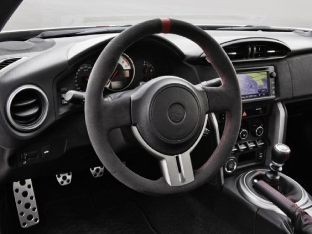 Innen darf der Pilot in ein mit Alcantara bezogenes Sportlenkrad greifen, das am oberen Rand eine rote Nullstellenmarkierung in der 12-Uhr-Position hat. Auch das Armaturenbrett ist mit schwarzem Alcantara bezogen. Auf dem Mitteltunnel hinter dem Schalthebel findet sich eine Aluminiumplakette mit „Cup Edition“-Schriftzug, dem GT86-Logo (zwei flachliegende Kolben, die den Boxermotor stilisieren) und einer durchlaufenden Nummerierung, da das Sondermodell auf lediglich 86 Exemplare limitiert ist.