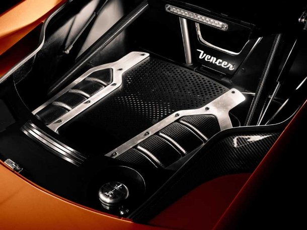 Der Vencer Sarthe erhielt seinen Namen durch den berühmten Rennkurs „Circuit de la Sarthe“ am gleichnamigen Fluss in Frankreich, auf dem jährlich die 24 Stunden von Le Mans ausgetragen werden. Angetrieben wird der neue Sportwagen von einem 6,3 Liter großen V8-Motor mit Kompressoraufladung. Dadurch stehen 457 kW/622 PS und ein maximales Drehmoment von 838 Newtonmetern zur Verfügung. Der Spurt auf Tempo 100 ist nach 3,6 Sekunden erledigt. Zudem gibt Vencer eine Höchstgeschwindigkeit von 338 km/h.