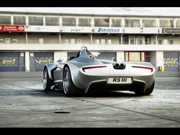 Der RS III ist als 1+1-Sitzer ausgelegt. Über dem Beifahrerplatz lässt sich eine Abdeckung anbringen. Damit schlägt man eine Brücke in die Historie. Damals war es üblich mit dem eigenen Auto zum Rennen zu fahren, dort kleinere Modifikationen vorzunehmen, nach Möglichkeit zu gewinnen, dann zurückzurüsten und glücklich wieder heimzufahren. Die Karosserie aus Kohlefaser ruht auf einem Gitterrohrrahmen.