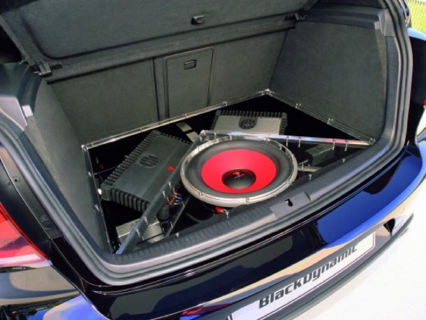Die Hauptkomponenten der 1.800 Watt starken Audioanlage befinden sich unter einer handgefertigten Plexiglasabdeckung im Kofferraum.