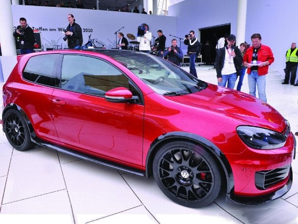 Normalerweise feiern solche Conceptcars eine rauschende Premiere im Scheinwerferlicht, sind danach vielleicht noch auf ein oder zwei Messen weltweit zu sehen und rollen danach ins Depot oder mit Glück ins Museum. Dem Volkswagen Golf GTI Excessive könnte ein anderes Schicksal blühen. Die Anbauteile könnten, positive Resonanzen der Fans beim GTI Treffen vorausgesetzt, ins Original Zubehör-Programm von VW aufgenommen werden und somit für jeden neuen Golf GTI bestellbar sein.