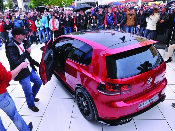 Normalerweise feiern solche Conceptcars eine rauschende Premiere im Scheinwerferlicht, sind danach vielleicht noch auf ein oder zwei Messen weltweit zu sehen und rollen danach ins Depot oder mit Glück ins Museum. Dem Volkswagen Golf GTI Excessive könnte ein anderes Schicksal blühen. Die Anbauteile könnten, positive Resonanzen der Fans beim GTI Treffen vorausgesetzt, ins Original Zubehör-Programm von VW aufgenommen werden und somit für jeden neuen Golf GTI bestellbar sein.