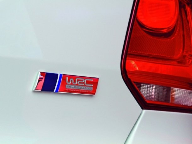 Neben der rechten Rückleuchte findet sich das offizielle Logo der World Rallye Championship, in der VW ab kommendem Jahr offiziell antreten wird.