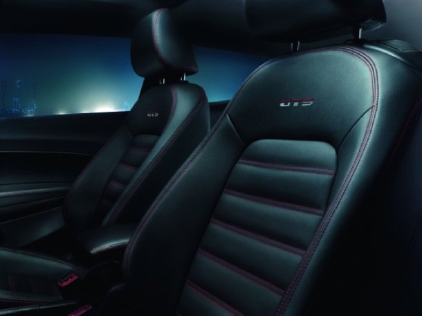 Auch im Interieur dominieren die Farben schwarz und rot. Das Schwarz der Sitze, des Armaturenbretts nebst Mittelkonsole, des Fußraums und des Dachhimmels wird durch rote Kontrastnähte an den Sitzen, der Schaltmanschette, dem Handbremshebel, dem Sportlenkrad und den Armlehnen akzentuiert. Zusätzlich findet sich auf dem Schalthebel ein runder Griff, der in seinem Design an den legendären Golfball erinnerte, den Volkswagen bereits im allerersten Golf GTI und später auch im ersten Scirocco GTS an dieser Stelle verbaute. In die Sitzlehnen ist in rot der „GTS“-Schriftzug eingestickt. Sowohl die Bedienelemente für das Audiosystem und die Klimaanlage, als auch die Türgriffe im Innenraum bestehen aus Metall, ebenso die in der unteren Lenkradspange platzierte „GTS“-Plakette.