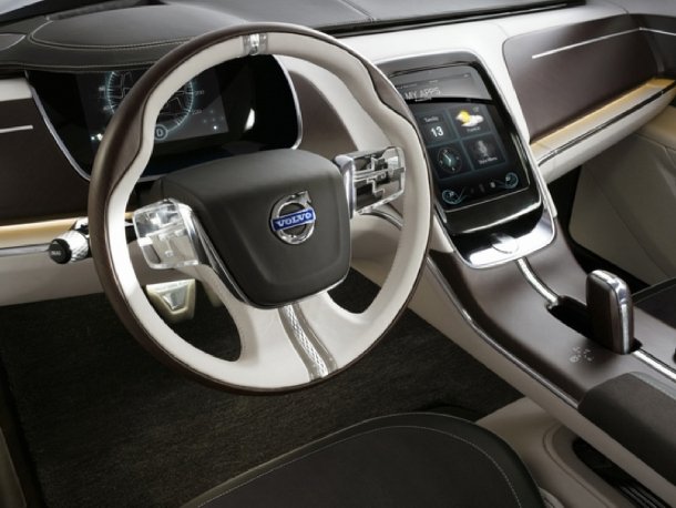 Wie man es von einer Luxuslimousine erwarten kann, findet man natürlich auch im Concept You von Volvo eine topausgestattete Inneneinrichtung mit viel Leder. Dazu gibt es ein fahrerorientiertes Cockpit mit innovativen Bedienelementen mit Smart-Pad-Technologie. Sie ersetzen die bislang bekannte Tasten- und Schalteransammlung im Fahrzeug und machen die Bedienung intuitiver. Hinter dem Lenkrad ersetzt der Driver Information Monitor die bisherige Tacho-Einheit, während über ein Head-Up-Display die wichtigsten Informationen in die Windschutzscheibe eingeblendet werden. Zwei Touch-Screen-Monitore in der Mittelkonsole und zwischen den vorderen Sitzen steuern die Fahrzeugfunktionen, wie das Radio, das Navigationssystem oder die Klimaanlage an. Die Anzeigen in der Mittelkonsole werden nur aktiv, wenn der Fahrer hinschaut, was über eine Infrarotkamera registriert wird. So stören die Leuchten nicht im Augenwinkel während der Fahrt. Funktionen wie der Onboard-Internetzugang können während der Fahrt nur vom Beifahrer aktiviert werden, der ebenfalls von der Kamera erfasst und erkannt wird.