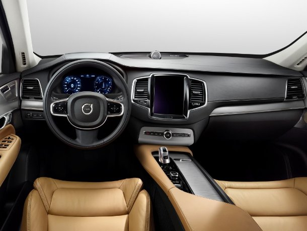 Neben weichem Leder und hochwertigem Holz sorgt vor allem der Tablet-artige Touchscreen-Monitor im Interieur für den gewünschten Luxus. Er stellt das Herzstück des Bordbediensystems dar und stellt den Zugang zu zahlreichen internetbasierten Informationsdiensten und Produkten her. Zudem wirken Armaturenbrett und Mittelkonsole durch den Monitor deutlich aufgeräumter, da er viele Knöpfe und Schalter in sich vereint. So kommen liebevolle Details wie der von Hand aus Kristallglas hergestellte Schalthebel der schwedischen Glasmanufaktur Orrefors besser zur Geltung. Insgesamt passen bis zu sieben Passagiere in den neuen XC90, wobei in der dritten Sitzreihe noch genügend Platz für Menschen bis zu einer Körpergröße von 1,70 Meter bleibt. Unterwegs sorgt dann ein Audiosystem von Bower & Wilkins aus Großbritannien für die klangliche Untermalung mit 1.400 Watt aus insgesamt 19 Lautsprechern.