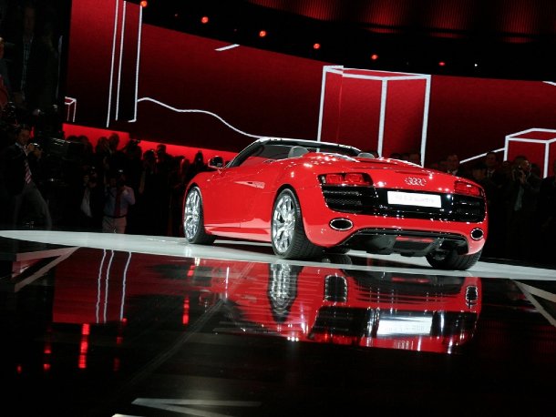 Rupert Stadler, Chef von Audi, rollte schließlich mit dem R8 Spyder herein und öffnete unterwegs das Verdeck. Ganz ehrlich? Offen gefällt uns der R8 besser als die Coupé-Version. Der Spyder ist übrigens nur als 5,2-Liter V10 erhältlich.
