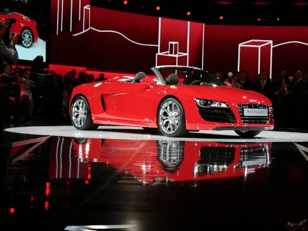 Rupert Stadler, Chef von Audi, rollte schließlich mit dem R8 Spyder herein und öffnete unterwegs das Verdeck. Ganz ehrlich? Offen gefällt uns der R8 besser als die Coupé-Version. Der Spyder ist übrigens nur als 5,2-Liter V10 erhältlich.
