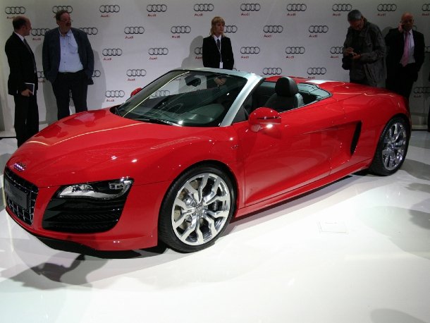 Der Audi R8 Spyder macht live eine sehr gute Figur und wird mit Sicherheit an die Verkaufserfolge seiner geschlossenen Brüder anschließen. Auf dem abendlichen Event präsentierte er sich in rot, am nächsten Tag auf dem Audi-Messestand in Halle 3.0 sollte er sich dann in weiß im Messelicht sonnen.