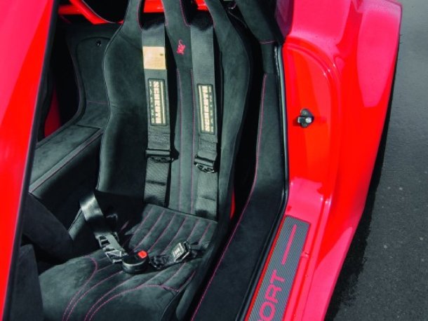 Leichte Sportschalensitze mit Vierpunktgurten sorgen für eine gute Verbindung zwischen Insassen und Fahrzeug.