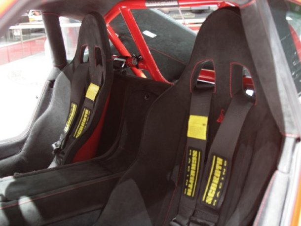 Die Passagiere sitzen in Sportschalensitzen mit Vierpunktgurten und genießen den 420 PS starken V8-Saugmotor.