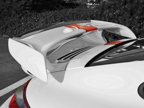 Die armen Gummis stammen im übrigen von Dunlop, haben die Größe 235/30 (vorn), beziehungsweise 325/25 (hinten) und sind auf 20 Zoll großen Felgen von Sportec montiert. Am Fahrwerk wurde wenig verändert, einzig die Serien-Federn wurden gegen Sportfedern von H&R getauscht. Optisch wurde am GT2 ebenfalls kaum Hand angelegt. Außenspiegelgehäuse und eine Heckspoilerlippe aus Sichtcarbon sind die einzigen Änderungen.