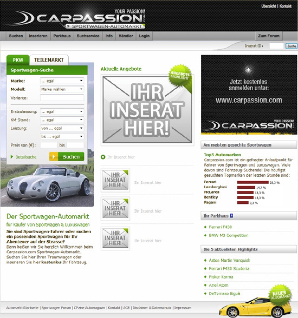 Der Carpassion.com Sportwagen Auto- und Teilemarkt ist da!